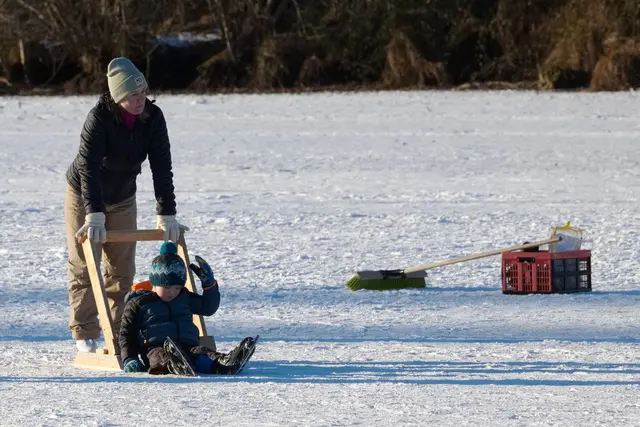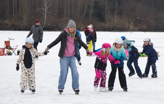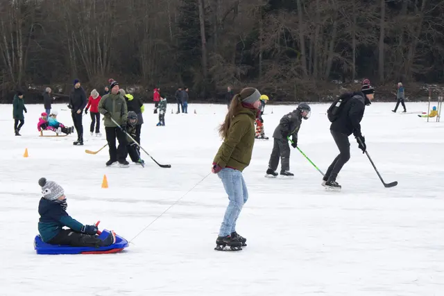 Mit "Kind und Kegel" auf die Natureisfläche: