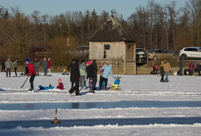 Dank der Minusgrade ist der große Schacherteich in der Marktgemeinde Kremsmünster an der Gemeindegrenze zu Sipbachzell schon seit Ende Dezember zugefroren. Die große Natureisfläche lockte am Sonntag, den 4. Jänner 2026 rund 700 Hobbysportler und Familien mit „Kind und Kegel“ an. Die Eisdecke hält und wird täglich stärker. Viele Eisstockschützen, Schlittschuhläufer, Eishockey-Spieler und Familien mit Kinderwägen nützen die große Eisfläche für ihr Vergnügen an der frischen Luft. Und zur Freude...