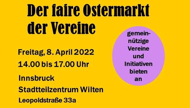 Ein ganz besonderer Ostermarkt findet am Freitag, 8. April von 14-17 Uhr in Innsbruck, Wilten statt (Stadtteilzentrum Wilten, Leopoldstr. 33a): Verschiedene gemeinnützige Vereine und Initiativen bieten an, wähle Deine neuen Lieblingsstücke aus! Es erwartet euch ein vielfältiges, buntes und außergewöhnliches Sortiment an handgemachtem Kunsthandwerk sowie ein feines Buffet mit Kuchen und Snacks. Der Erlös des Marktes wird für die Vereinsprojekte verwendet. Bei diesem Ostermarkt könnt Ihr...