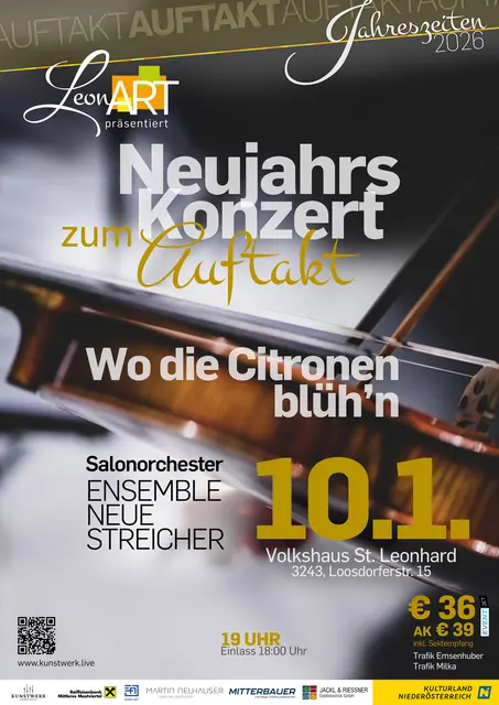 Das Salonorchester Bad Goisern lädt auch 2026 wieder zu den Neujahrskonzerten ins Kulturzentrum Gosau – am Samstag, 3. Jänner 2026 um 18 Uhr – und am Sonntag, 4. Jänner 2026 um 18 Uhr in den Bad Goisererer Festsaal ein. GOSAU, BAD GOISERN. Die Liebe mit all ihren Facetten ist das Leitthema des heurigen Programms, interpretiert von zwei jungen aufstrebenden Künstlern, der Sopranistin Sophie Schneider aus Bad Ischl und dem Tenor Sebastian Rindberger aus Salzburg. Dazu gibt es einen bunter Strauß...