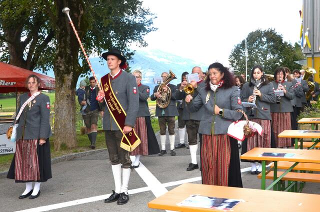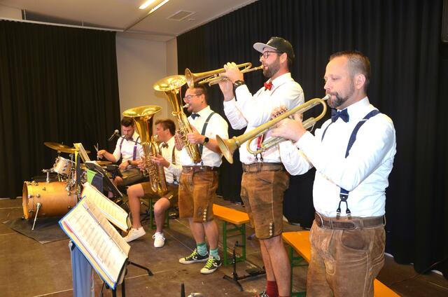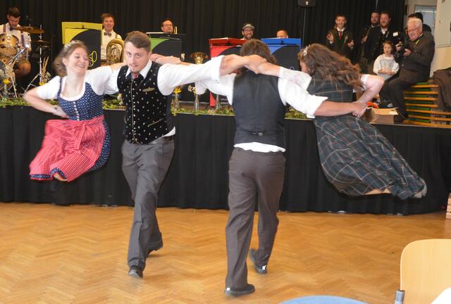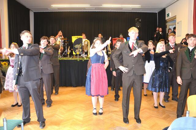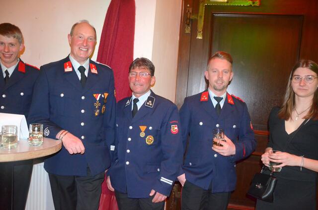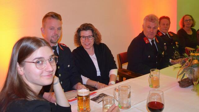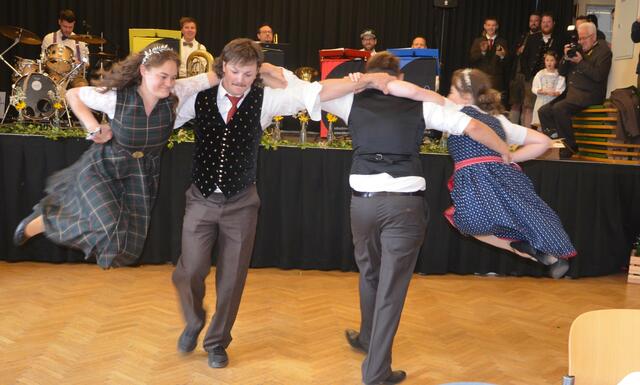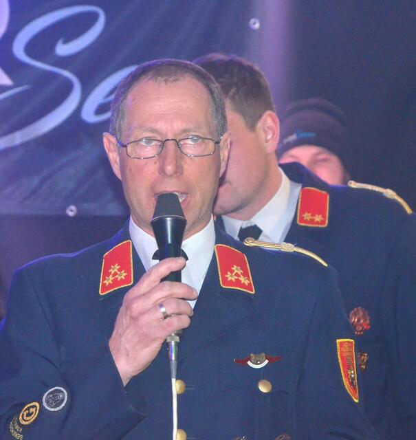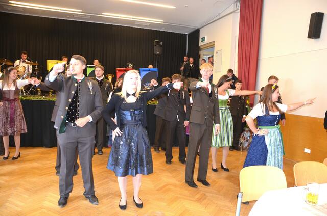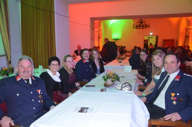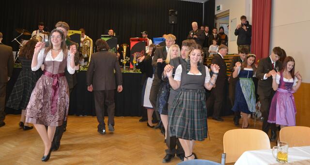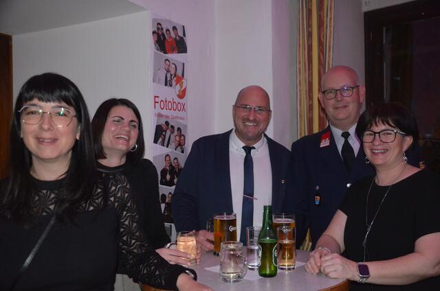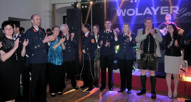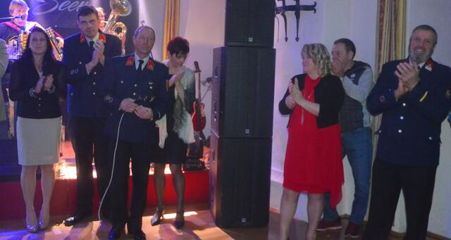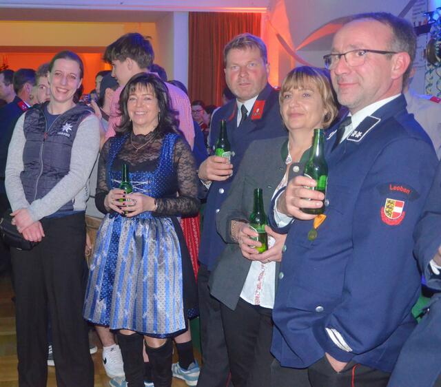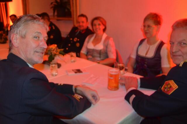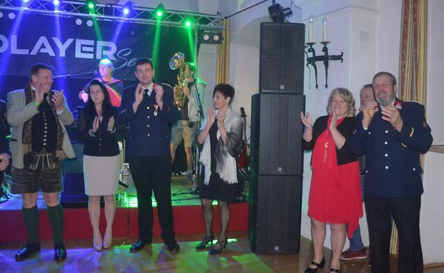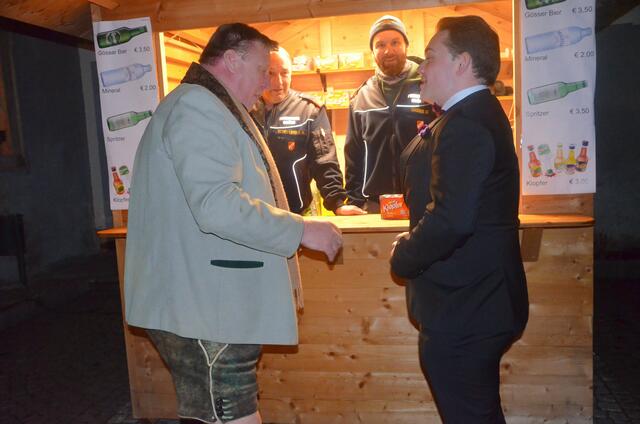 Bürgermeister Sepp Jury in Tracht und Kommandant Edmund Glanznig (2.v.re.) beim Auftakt des Feuerwehrballs