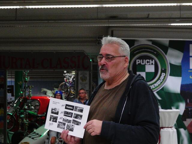 15. August, 15. Judenburger Puch-Parade: Da knatterten sie wieder aus allen Richtungen zum Start nach Judenburg. Puch-Mofas, -Mopeds, -Roller, Motorräder, -Autos. Haflinger, Pinzgauer. Am Murtaler Platz vor dem Puch-Museum sammelten sich von 9 bis 11 Uhr über 300 Teilnehmer zum kultigen Treffen vor dem Start. JUDENBURG. Roland Kocher aus Weißkirchen zum Beispiel war in passendem Outfit mit seinem - Fremdfabrikate waren ja erlaubt - HMW 50 Eisverkäufer da. Baujahr 1958, der mit 50 ccm 2,7 PS ans...