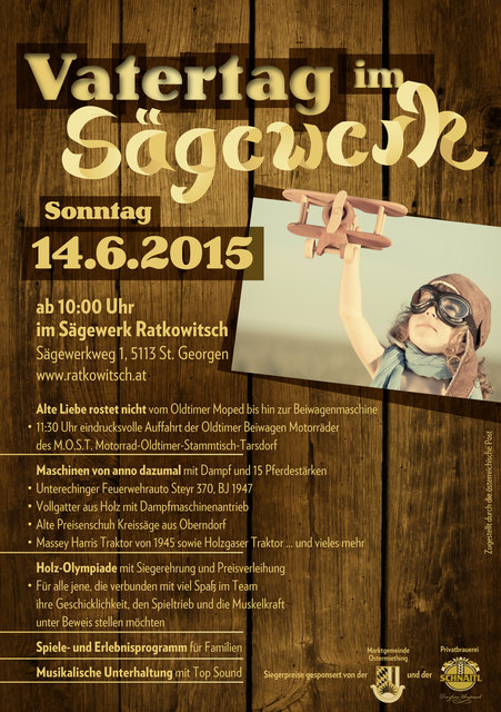 Erlebnisreiches Familienfest der besonderen Art im Sägewerk Ratkowitsch am 14. Juni 2015 ab 10:00 Uhr Alte Liebe rostet nicht vom Oldtimer Moped bis hin zur Beiwagenmaschine • 11:30 Uhr eindrucksvolle Auffahrt der Oldtimer Beiwagen Motorräder des M.O.S.T. Motorrad-Oldtimer-Stammtisch-Tarsdorf Maschinen von anno dazumal mit Dampf und 15 Pferdestärken • Unterechinger Feuerwehrauto Steyr 370, BJ 1947 • Vollgatter aus Holz mit Dampfmaschinenantrieb • Alte Preisenschuh Kreissäge aus Oberndorf •...