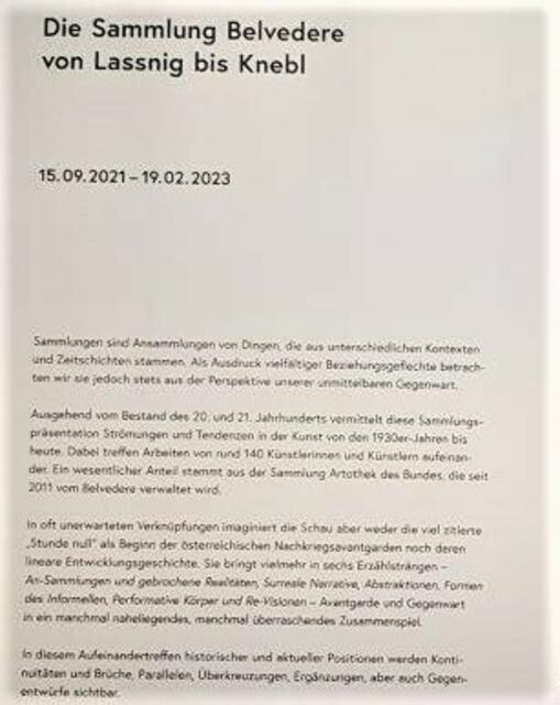 Eigentlich heißt das Museum Belvedere 21, und im 20. Jahrhundert hieß es 20er Haus. Es ist der 1962 in Wien wieder aufgebaute Pavillon des Architekten Karl Schwanzer. Er war 1958 das Österreich-Haus bei der Expo in Brüssel. Nun dient er als Museum moderner österreichischer Kunst. Er steht im Schweizergarten und hat auch einen Skulpturengarten. Die Ausstellung im Herbst 2021 - offen noch bis Mitte Februar 2022 - zeigte österreichische Avantgarde: viele bereits Klassiker der Moderne, ich nenne...