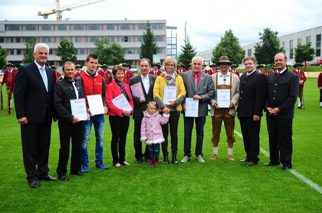 TFV Präsident Josef Geisler, TFV Vizepräsident Adi Stastny, Hannes Kerschdorfer, Horst Unterpertinger, TFV Vizepräsident Arno Bucher, Landeshauptmann Stellvertreter Georg Dornauer | Foto: Dosch