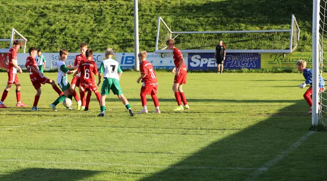 Beim ersten Meisterschaftsspiel der U14-Mannschaft der ASKÖ Schwertberg gegen die SPG St. Georgen/G. / Langenstein erlebten die 50 Zuschauer ein spannendes Spiel. Für die Schwertberger Jungs und Julia war es das erste Meisterschaftsspiel auf dem gesamten Spielfeld – eine wertvolle Gelegenheit, wichtige Erfahrungen zu sammeln. Das erste Tor für Schwertberg fiel bereits nach 13 Minuten. In der 25. Minute erhöhte Simon Wolfinger nach einem präzise getretenen Eckball von Julian Kranz auf 2:0. Adam...