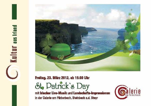 Irische Live-Musik und Impressionen der wunderschönen Irischen Landschaft, das bekannte Bier der Iren "Guinness" oder Irisch Coffee - gewähren ein wenig Einblick in die Irische Kultur. Wann: 23.03.2012 19:00:00 Wo: Galerie am Färberbach, Weyer Gasse 9, 4594 Steinbach an der Steyr auf Karte anzeigen