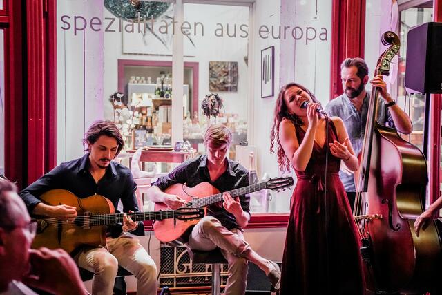 Freitag, 14, November 2025, 19 Uhr Schönbergsaal – Schloss Traun Erwachsene: € 20,– KUFO-Mitglieder € 15,– Jugend: € 10,– Karten an der Abendkassa, freie Sitzwahl. Im neuen Programm gibt es zu hören: Swingklassiker wie das Horace-Silver Stück "The Preacher", Duke Ellingtons "It don`t mean a thing", Sarah Vaughans „Lullaby of Birdland“. Ebenso verjazzte und groovende Klezmer-Stücke wie „Mamalige“, aber auch fein arrangierte Schlager wie „Vielen Dank für die Blumen“ (so ist auch das neue Programm...
