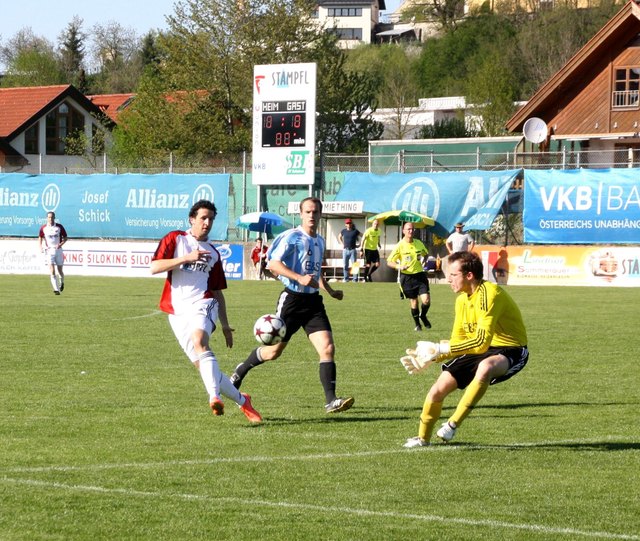Union Ostermiething – Union Mondsee 2:3 Endlich der erste Sieg. Schwaighofer sorgte für das 1:0 (21. min). Kurz darauf brachte eine schöne Kombination Leitner-Handlechner das 2:0. Weitere gute Chancen der überlegenen Mondseer wurdenvergeben. Aus dem Nichts der Anschlusstreffer. Nach der Pause wurde Ostermiething stärker, vergab aber einen Elfmeter und hatte mit einem Stangenschuss Pech. Das vorentscheidende 3:1 per Kopf erzielte Luca Ban. Bei 2:3 profitierte Ostermiething von einem schweren...