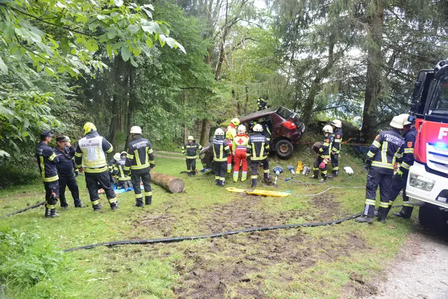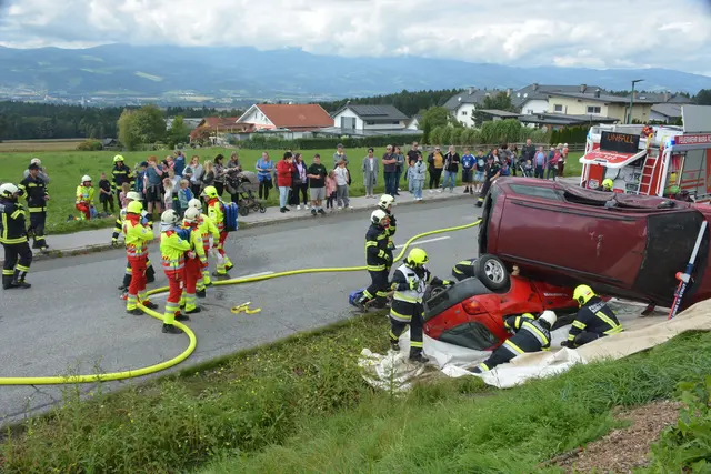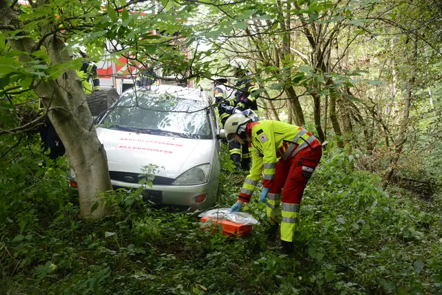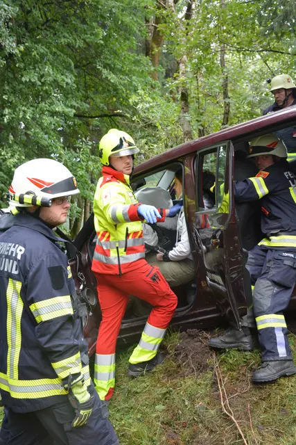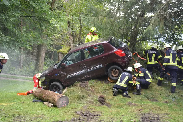Pkw stürzte in Graben - Feuerwehr im Einsatz