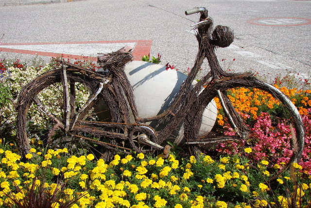 Radweg mit Brennesseln und Gestrüpp verwachsen