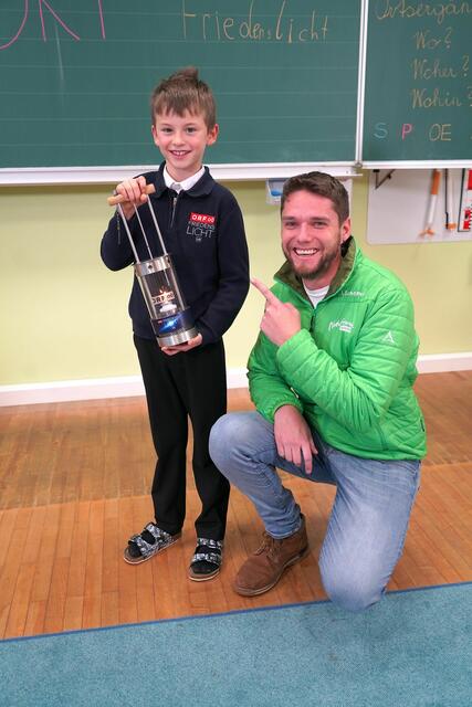 Besuch der Naturfreunde und des ORF mit Friedenslichtkind Matthias Secklehner