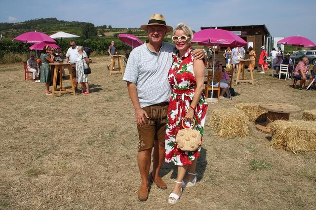Freudig präsentieren Weinhauer Hannes Leeb und Sandra Dorr den ersten Eiswein, einen Welschriesling nach zehn Jahren. | Foto: Claudia Reisinger