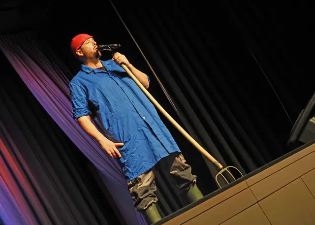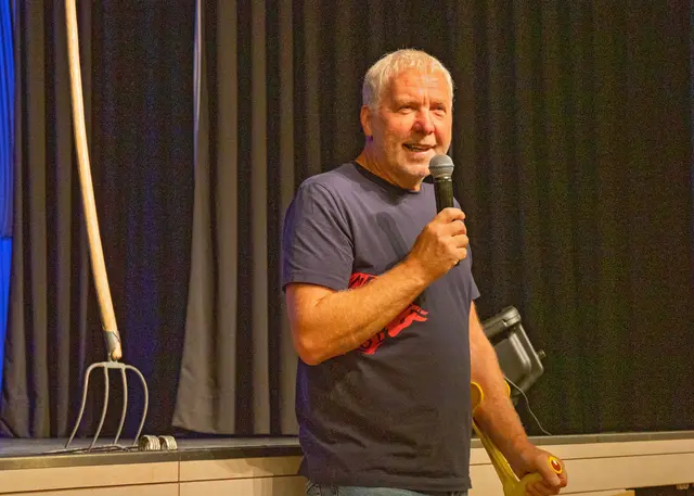 Blauer Arbeitsmantel, roter Stallhut, Gummistiefel und Arbeitshose: So kennt man den Petutschnig Hons aus Schlatzing. Weil er schon einige Male in Zwentendorf war und vor allem weil Hons eine gewaltige Präsenz in den sozialen Medien hat, eine Präsenz, die ihm stets volle Säle beschert, so auch in Zwentendorf. Bis Ende des Jahres zählt man noch weitere elf Auftrittstermine. Da fragt man sich, wie macht das der Bauer Hons? Bergbauer in Kärnten, Frau und vier Kinder, - einen sich einmischenden...