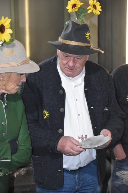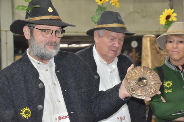 - Präsentieren stolz die neue Plakette (v.l.): "Sonnenanbeter" Harald Klotz, Obmann Alois Föger und die neue Gotl Doris Thurnbichler.