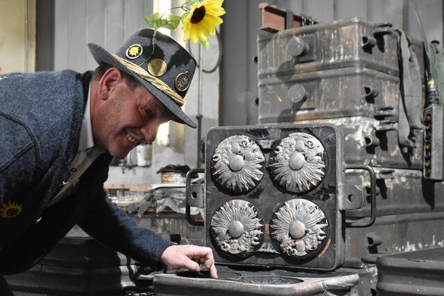 TELFS. Das Schleicherlaufen am 2.2. 2025 wirft seine Schatten voraus, doch mit der Gruppe der "Sunna" voraus sollte an dem großen Tag die Sonne vom Himmel lachen. Sie ist die erste Gruppe, die um 7:00 Uhr in den ersten "Kroas" tritt und in der Folge auf allen Aufführungsplätzen um gutes Wetter bittet. Vor Weihnachten wurde jedenfalls schon gut gelaut vorgeglüht: Zum dritten Male nach 2010 und 2015 fertigte Kunstgießer Wolfgang Krismer etwa 70 Plaketten im Auftrag der "Sunna" an.