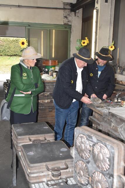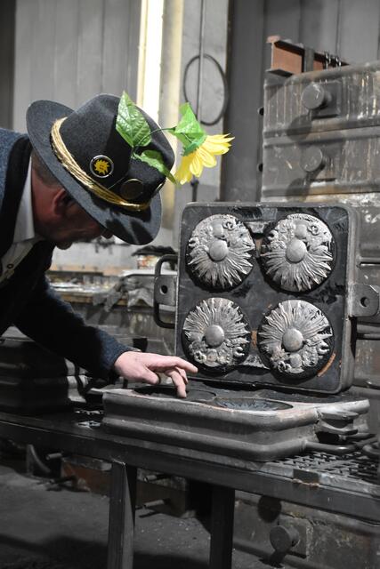 Nach dem Guss der Plaketten durfte sogar Gotl Doris Thurnbichler persönlich Hand anlegen und die frisch gegossenen Platten büsten. Bis zum Schleicherlaufen 2025 werden die Plaketten von den Mitgliedern des "Sunna" als begehrtes Sammlerstück verkauft.