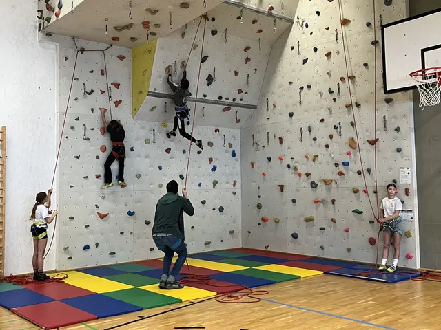 • Klettern: Unter der Anleitung erfahrener Lehrkräfte durften die Kinder die schuleigene Kletterwand ausprobieren und dabei Geschicklichkeit sowie Vertrauen in die eigenen Fähigkeiten entwickeln.