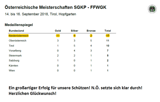 Die stetige Aufwärtsentwicklung des Schießsports in Niederösterreich, wurde mit diesem Ergebnis deutlich bestätigt.