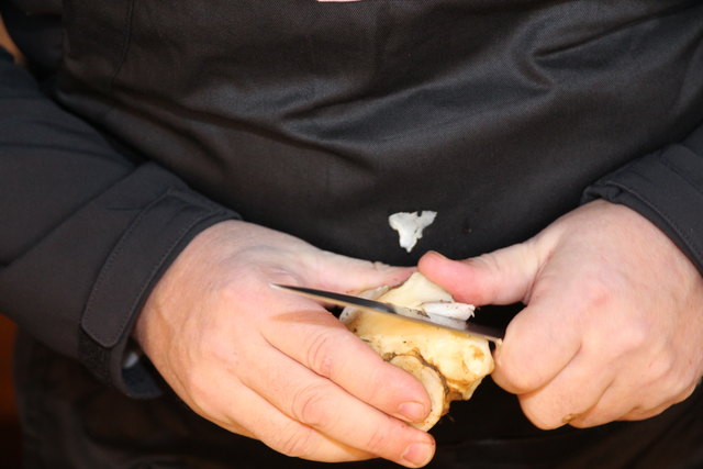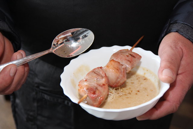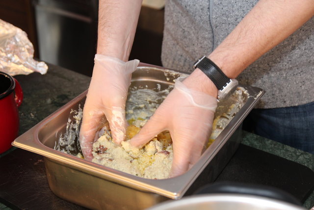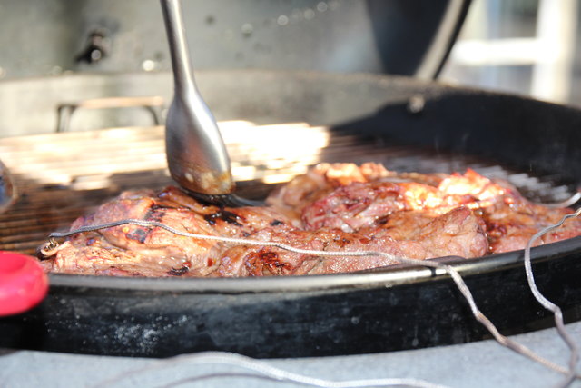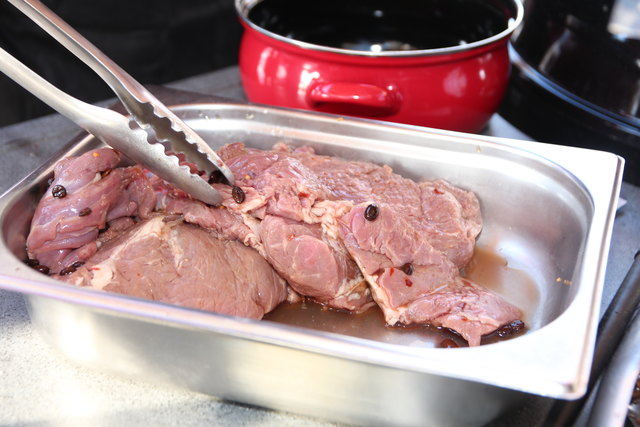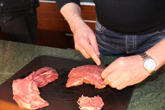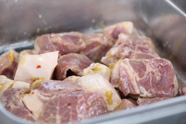 Vorbereitung: Schopf in Stücke schneiden, in der Marinade acht Stunden ziehen lassen