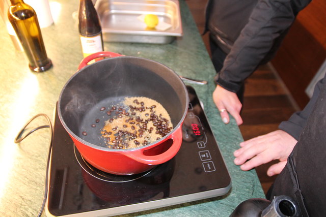 Marinade: 40 ml Marsala, Zitronensaft, 10 g brauner Zucker, Meersalz, Chiliflocken und Olivenöl