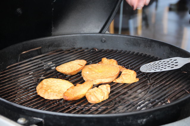 Die Beilagen sollten im Winter eher warm sein. Ein leckeres Kartoffelgratin funktioniert ebenso gut im Kugelgriller wie Bratäpfel als Nachspeise.