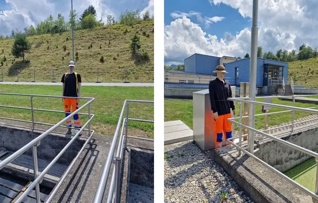 Die beiden stillen Kollegen - intern mittlerweile liebevoll als Peppi und Seppi bekannt - stehen nun wachsam am Rand, aufrecht, konzentriert, unbeirrbar. Unsere beiden Klärbecken-Wächter sind die neuste, aber altbewährte Vergrämungsmaßnahme gegen die unerwünschten, gefiederten Reisegäste. Ihre Anwesenheit zeigt bereits Wirkung: Die Vögel sind irritiert. Und wenn's gut läuft, auch dauerhaft hin zur Drau vergrämt.
