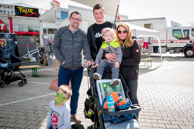 - Inmitten der Gratulanten: Familie Martin und Jane Falle mit den Kindern Alex und Tina