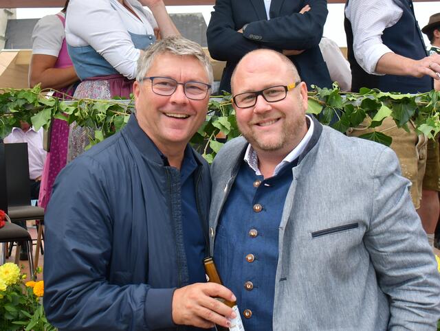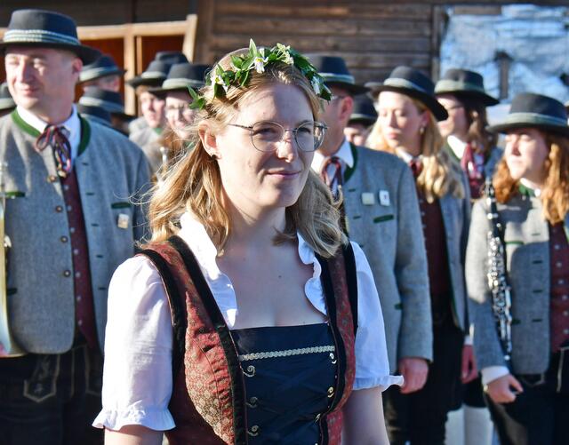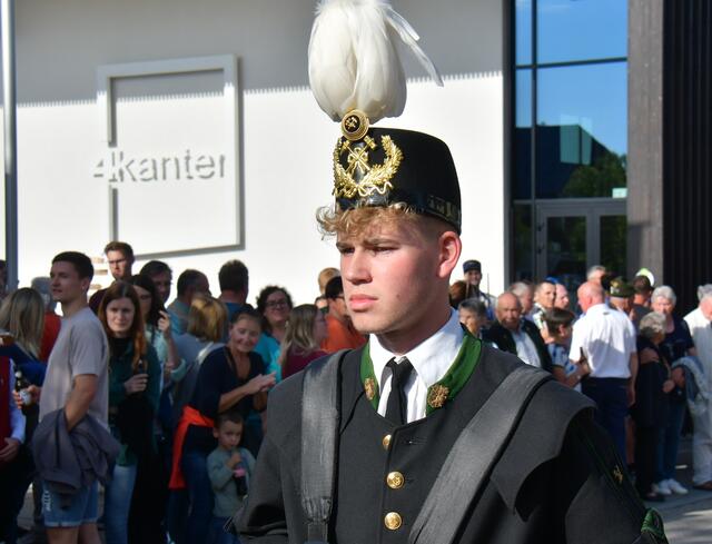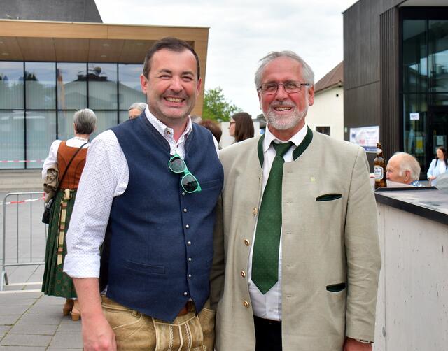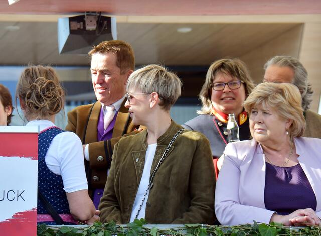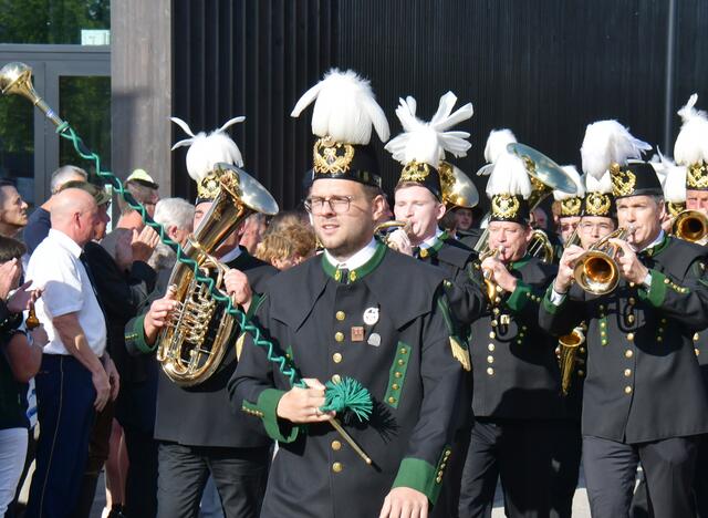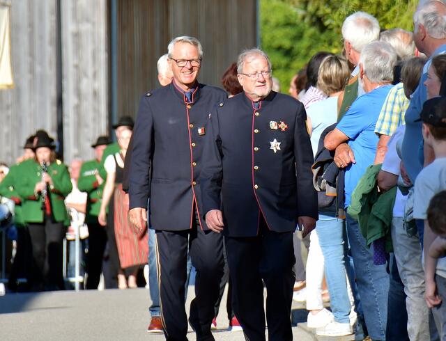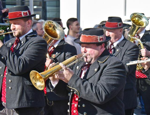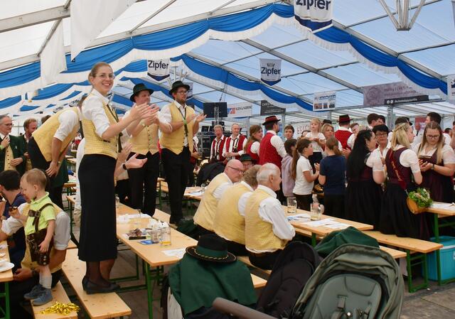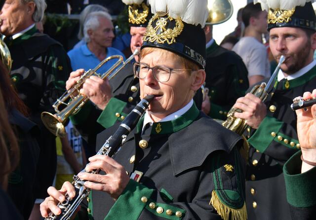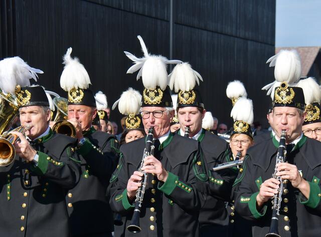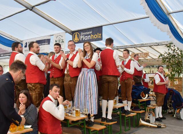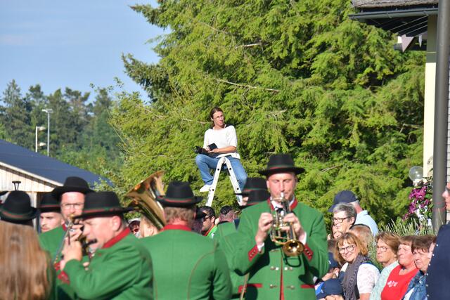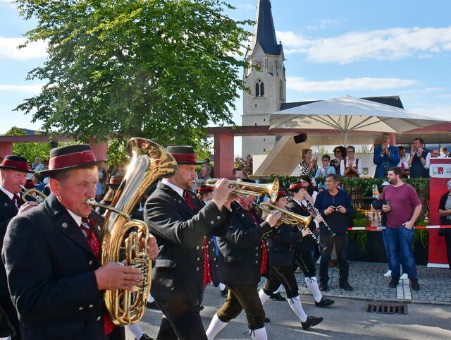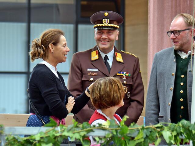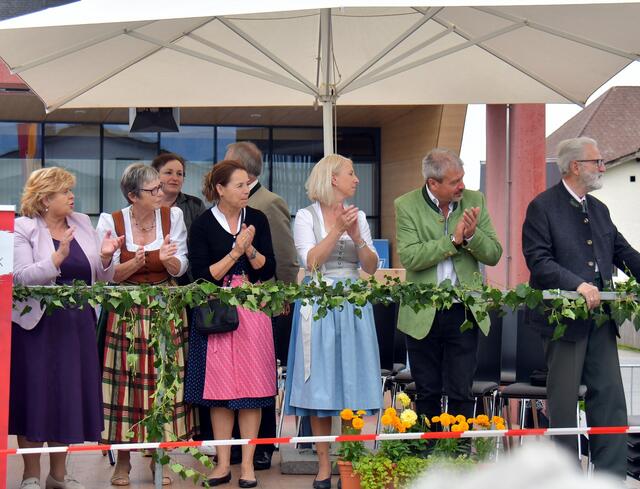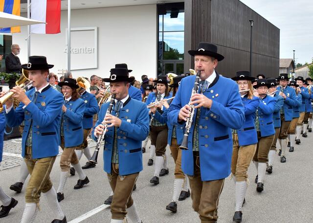 Auf der Ehrentribüne Bürgermeister und Bürgermeisterinnen der mitwirkenden Musikkapellen, Obmänner, Funktionäre des Blasmusikverbandes Vöcklabruck und sonstige Volksvertreter und Ehrengäste.