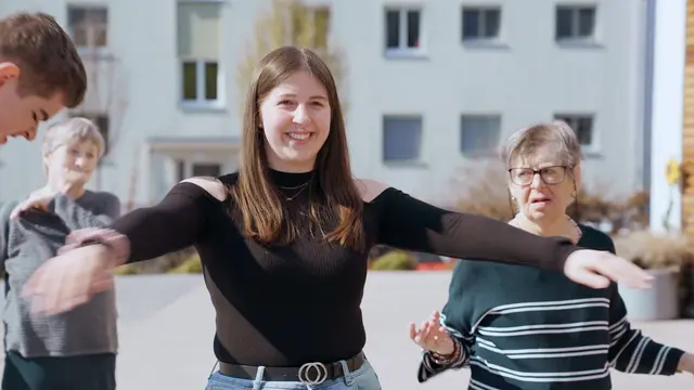 - Fery Berger (mitte) mit Theres Raith-Breitenberger (DLG Weiz) und betreuten Flüchtlingen.