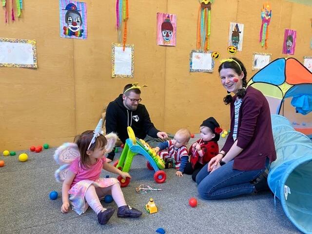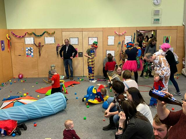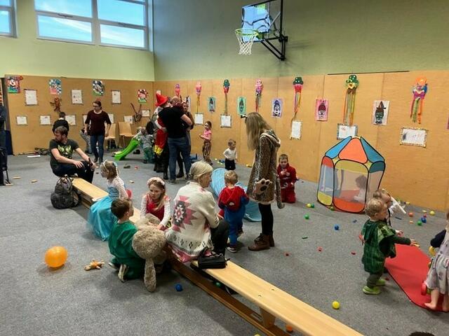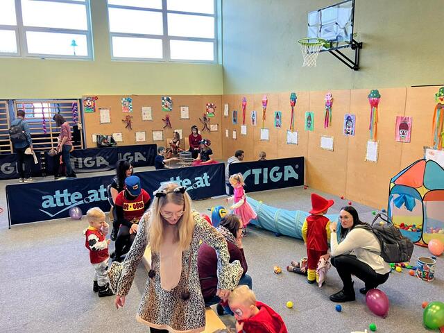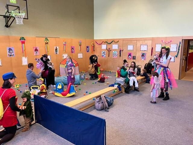 Ein großer Tanzbereich mit Musik, die Spielestationen, ein Kasperltheater und ein extra Bereich für die Krabbelkinder waren eine perfekte Unterhaltung und luden zum Austoben ein. Danach konnten sich die Kinder und Eltern mit Krapfen, Pommes und Würstchen wieder stärken.