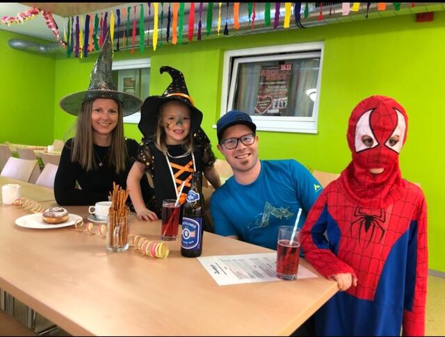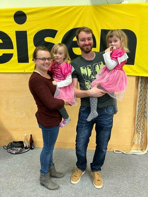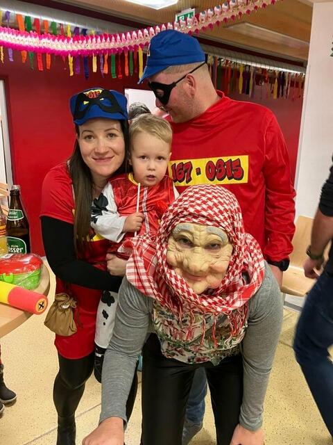 - Obfrau Andrea Petz, hier mit ihrer Familie, freute sich über den gelungen Kindermaskenball.