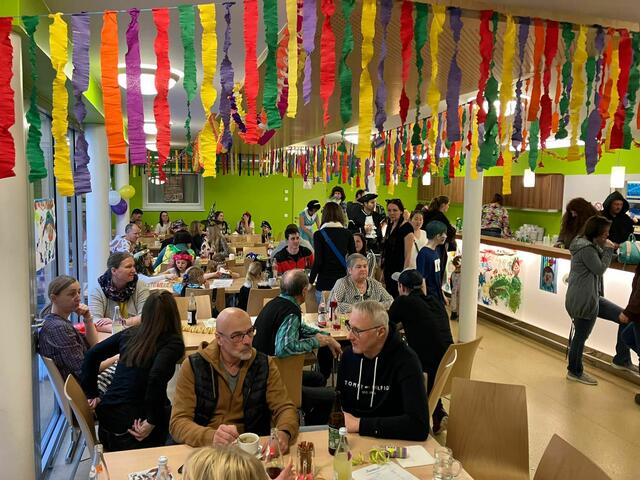Besondere Freude waren die Zeichnungen der Kinder der Volksschule und des Kindergartens, die die Wände im Teufelsteinsaal schmückten und von den Gästen bewundert werden konnten.
