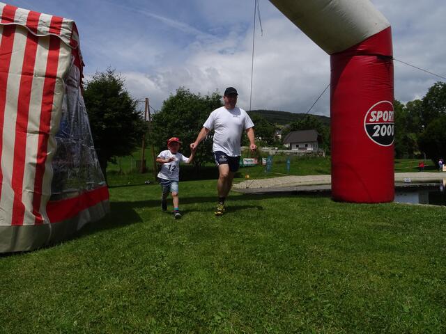 Beim Family-Crosstriathlon steht der Spaß und die gemeinsame Aktivität mit der Familie im Vordergrund. In jeder Staffel muss ein Kind sein, es können aber auch drei sportliche Kids ein Team stellen. Die Strecken sind so aufbereitet, dass sich die Disziplinen, schwimmen, biken und laufen für alle eignen. Gestartet wird am Badeteich mit einmaliger durchquerung des Sees (70 m), danach wird in der Wechselzone an den Radfahrer übergeben, der wiederum 3 Runden im Freizeitland fährt, bevor es in die Wechselzone geht und dem Läufer übergeben wird. Der Lauf endet im Zielbereich, direkt im Veranstaltungsbereich. Die Strecken sind allesamt von den Zuschauern einzusehen und somit kann man herzlich angefeuert werden. Bei dieser Staffel gewinnt das Team mit dem Mittelwert.