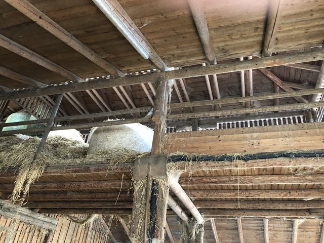 Um die Tiere gut zu versorgen, machen Anita und Johann alles selbst, von der Stallarbeit bis zum Futteranbau. Wenn Not am Manne ist, helfen die Eltern aus. Im noch sehr ursprünglichen Stallgebäude herrscht friedliche Stille bei den Kühen. Nur ruhige Kaugeräusche sind hörbar.