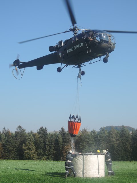 Das österreichische Bundesheer mit drei Hubschraubern und einem Flächenflugzeug, sowie die Polizei mit einem Hubschrauber des BMI, übernahmen die Transporte von Mannschaft, Geräten und Löschwasser zu den drei Absprungplätzen im Bereich des Einsatzortes.